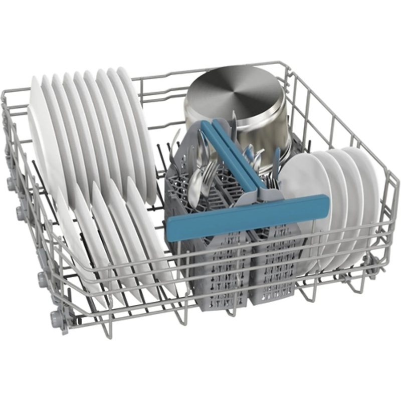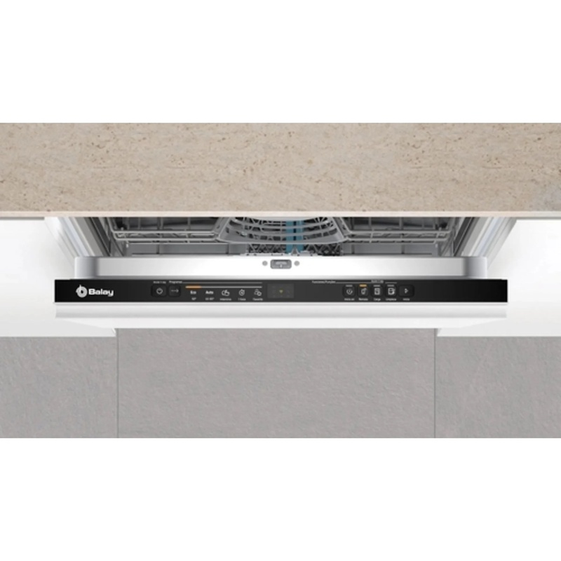 El lavavajillas integrable Balay 3VF5012NP cuenta con una capacidad de hasta 13 juegos de platos. Su nivel de ruido durante el funcionamiento es de 48 dB. Dispone de 5 programas de lavado que incluyen Opciones como Eco, Rápido, Intensivo, Prelavado y Auto. La clase energética del dispositivo es E. El panel de control permite seleccionar modos de funcionamiento y cuenta con indicadores LED para el estado. El consumo de agua por ciclo se establece en 9.5 litros. Su diseño permite una instalación ajustada en muebles de cocina. Dispone de un sistema de protección contra fugas de agua. Este modelo incluye un sistema de cesto ajustable con opción para colocar utensilios en diferentes posiciones. La temperatura de lavado se puede ajustar dependiendo del programa seleccionado y está diseñado para funcionar con detergentes líquidos y en tableta. Este equipo tiene una función de inicio diferido que permite programar el ciclo de lavado hasta 24 horas en el futuro. El lavavajillas Balay 3VF5012NP es compatible con accesorios adicionales que se pueden adquirir por separado.