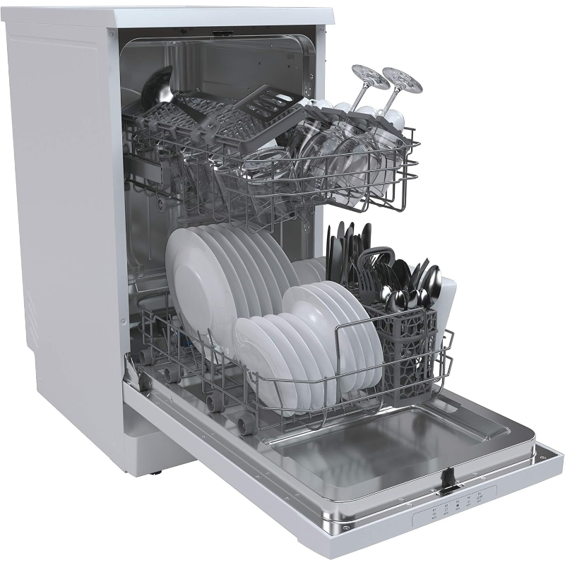Candy CDPH 2L1049W es un lavavajillas de libre instalación con capacidad para 10 servicios. Este modelo cuenta con 5 programas de lavado que permiten adaptar el ciclo a las diferentes necesidades de limpieza de los utensilios. Sus dimensiones permiten su colocación en distintas configuraciones de cocina. Posee una clase energética E, lo que indica su eficiencia en el consumo de energía. El nivel de ruido durante el funcionamiento es de 49 dB, lo que se clasifica como un funcionamiento moderado. Equipado con un sistema de secado por condensación, este lavavajillas necesita una conexión a la red eléctrica y acceso a agua para su operación. Además, dispone de bandejas ajustables para optimizar el espacio interno y facilitar la carga y descarga de los platos y utensilios. Su diseño incluye un panel de control intuitivo para seleccionar los programas y opciones de lavado. La temperatura de lavado varía según el programa seleccionado, con rangos que permiten un adecuado proceso de limpieza. También incluye un filtro que garantiza la separación de restos de comida durante las fases de lavado. Candy CDPH 2L1049W es compatible con productos de limpieza hacia lavavajillas que se requieren para un óptimo funcionamiento, cuyo uso es necesario para el mantenimiento del aparato. La instalación es realizada de forma independiente, sin requerir un espacio específico de encastre. Este modelo es parte de la categoría de electrodomésticos de lavado de utensilios de cocina.