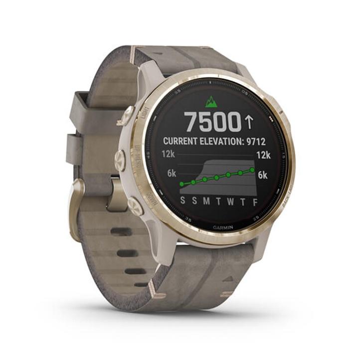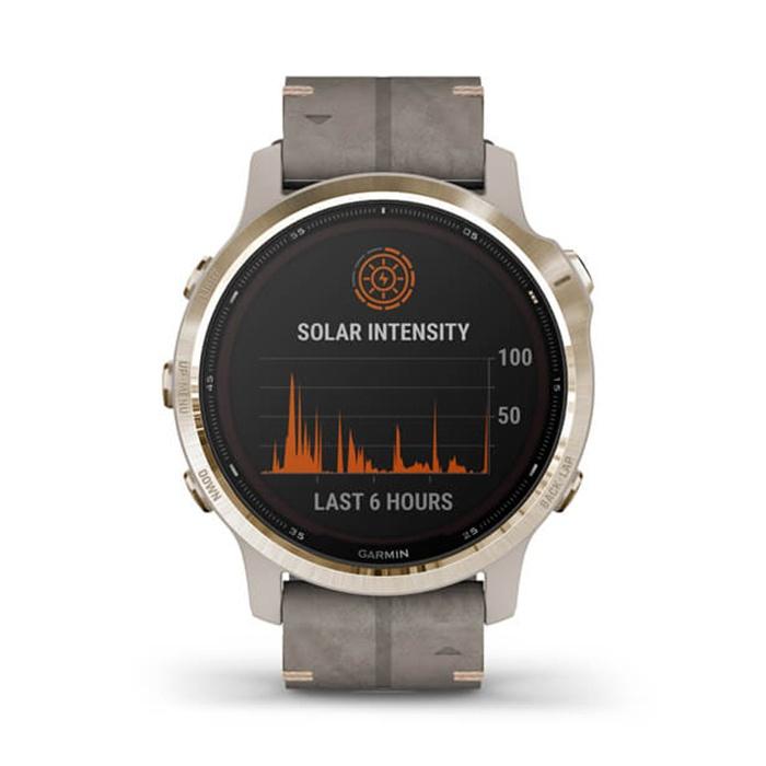 fēnix® 6S Pro Solar Light Gold con correa de cuero gris