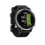 La impresionante pantalla táctil AMOLED de 1,2 pulgadas facilita la visualización de las distancias clave hasta el green, los obstáculos y las aproximaciones en más de 43.000 campos.
