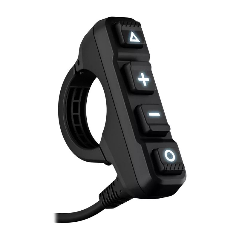 Las opciones de montaje robustas y versátiles permiten adaptar el controlador de manillar de la mejor forma posible a la configuración de tu vehículo. Puede utilizarse con manillares de 22,225 mm (7/8 in), 25,4 mm (1 in) y 31,75 mm (1-1/4 in) de diámetro.