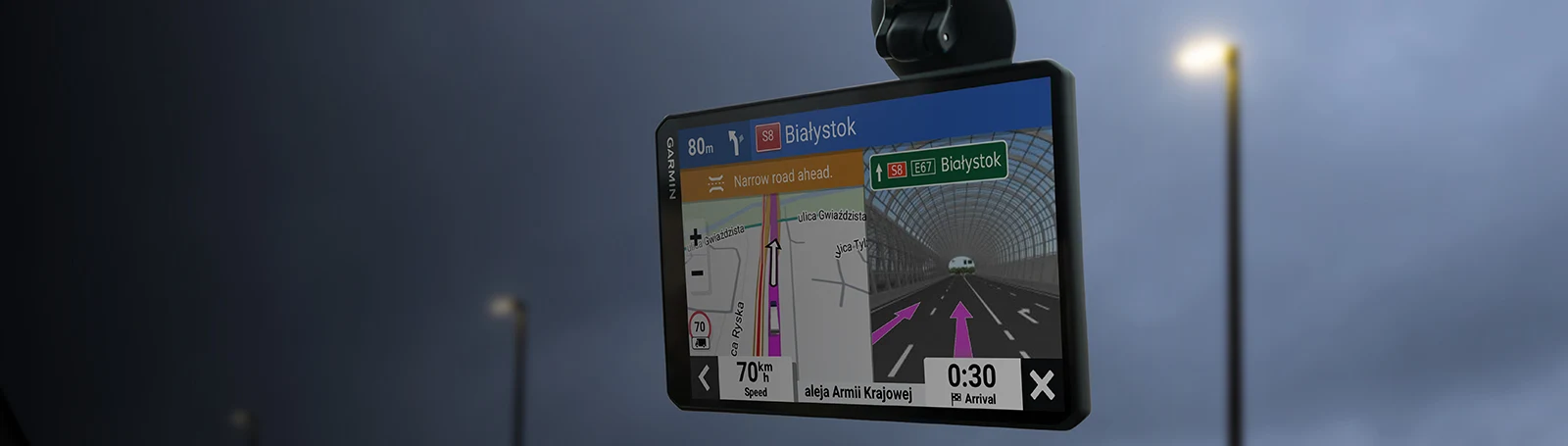 Este navegador por satélite de 7″ incorpora una dash cam1 para proteger tu reputación de conducción, rutas personalizadas2 basadas en el tamaño y el peso de tu camión, y planificación de llegadas innovadora.