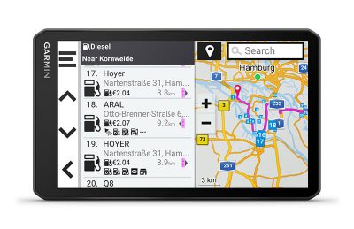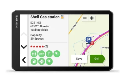 Localiza las paradas para camiones preferidas con el directorio preinstalado de servicios para camiones y tráileres, que te permite filtrar las listas por marca o servicio.