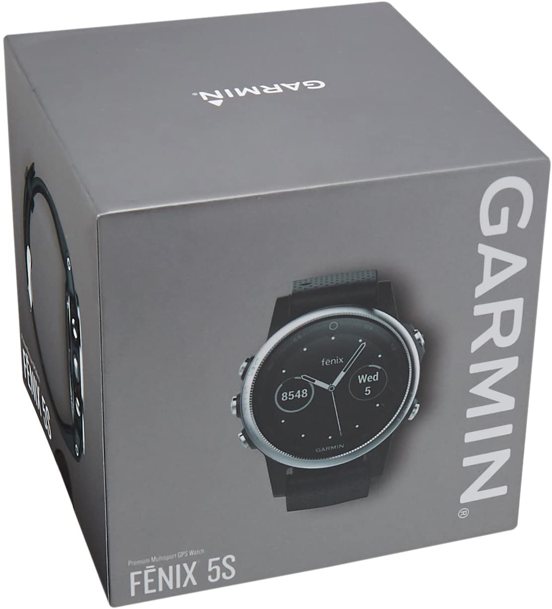Garmin Fenix 5S - Reloj multideporte, con GPS y medidor de frecuencia cardiaca, lente de cristal y bisel de acero inoxidable, 42 mm, Plata/Negro