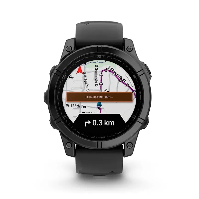 Con una brillante pantalla AMOLED de 1,3″, un bisel de acero inoxidable y una caja de polímero reforzado con fibra de 47 mm, el smartwatch fēnix E cumple con el estándar militar estadounidense de rendimiento térmico y resistencia a los golpes y el agua.