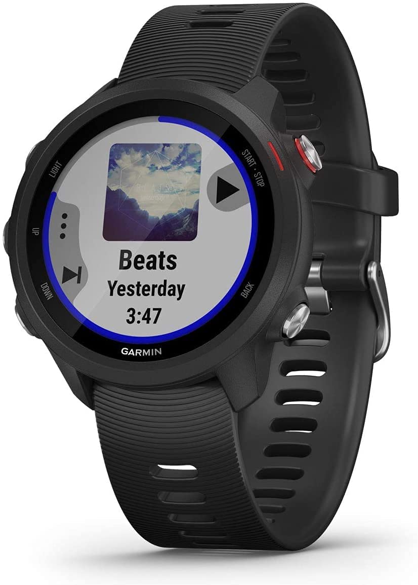 Garmin Forerunner 245 Music Reloj deportivo con GPS, color negro y rojo