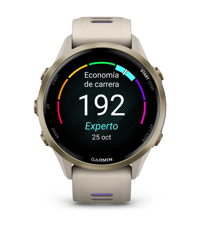 Vincula el reloj con el monitor HRM 600 (se vende por separado) para medir tu grado general de eficiencia energética mientras corres, utilizando el volumen de carrera a largo plazo, la longitud de zancada y la pérdida de velocidad al pisar, que te indica cuánto reduces la velocidad cuando el pie toca el suelo.