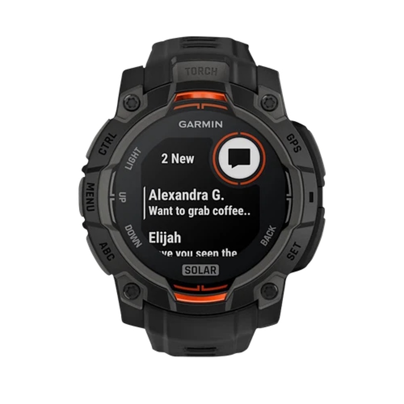 Recibe correos electrónicos, mensajes de texto y alertas en el reloj cuando esté vinculado con un smartphone Apple o Android compatible.