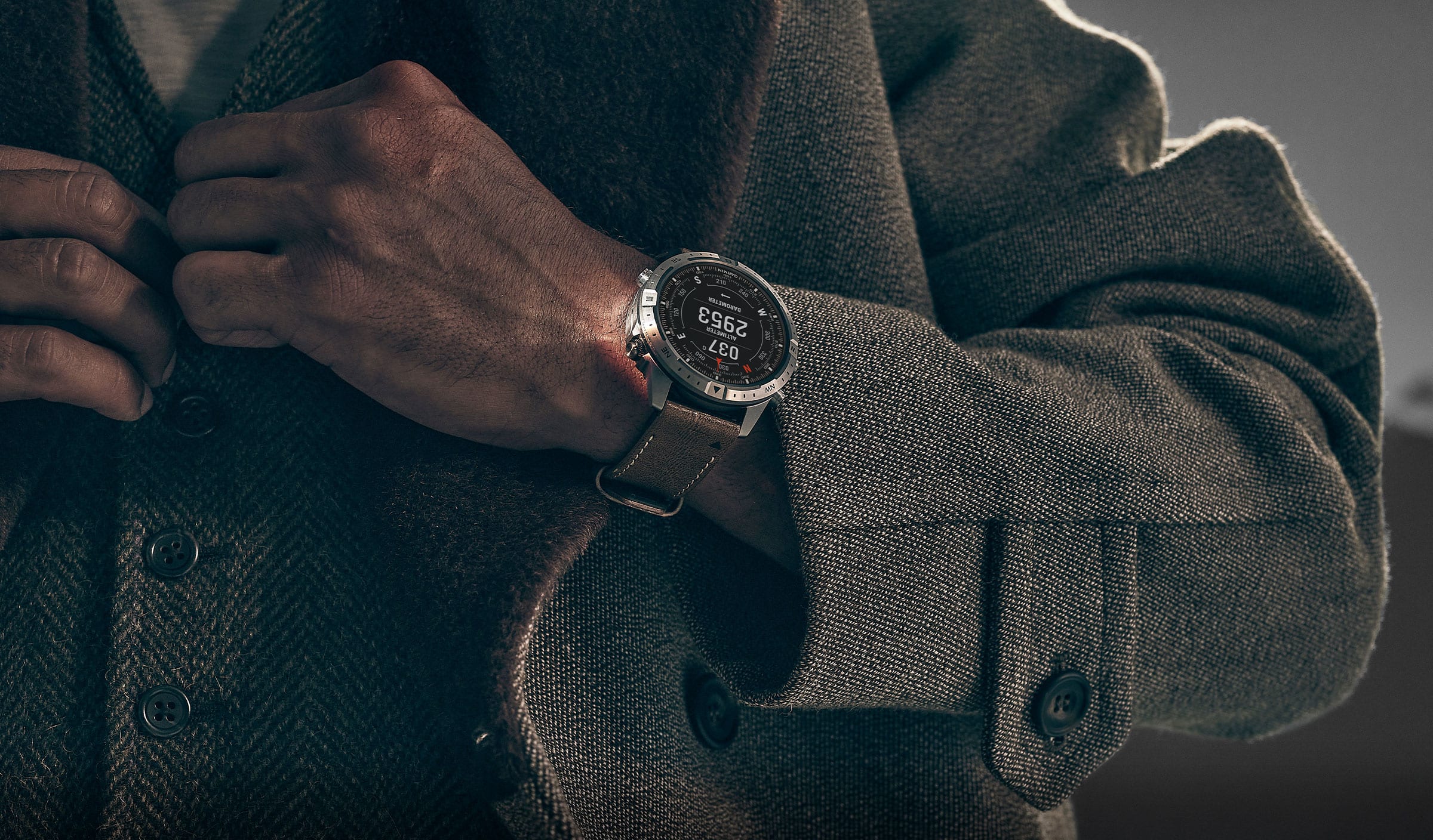 Con un diseño que es toda una declaración de intenciones, este reloj moderno y lujoso posee una correa híbrida de piel y caucho FKM, una pantalla táctil AMOLED excepcional con botones de control tradicionales y una carcasa de 46 mm hecha de titanio de grado 5 que aporta una resistencia extraordinaria.