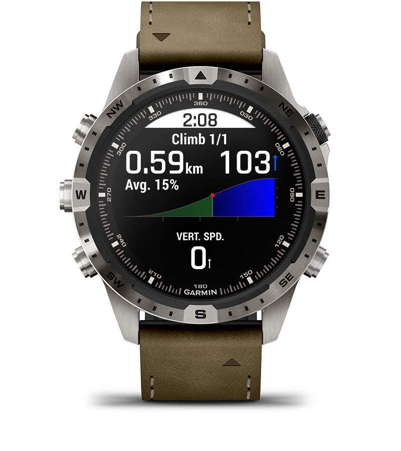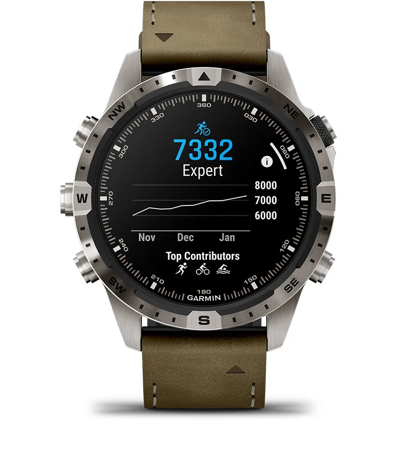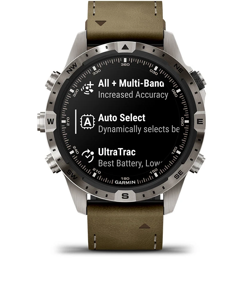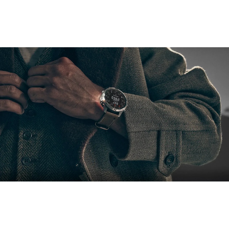 Con un diseño que es toda una declaración de intenciones, este reloj moderno y lujoso posee una correa híbrida de piel y caucho FKM, una pantalla táctil AMOLED excepcional con botones de control tradicionales y una carcasa de 46 mm hecha de titanio de grado 5 que aporta una resistencia extraordinaria.