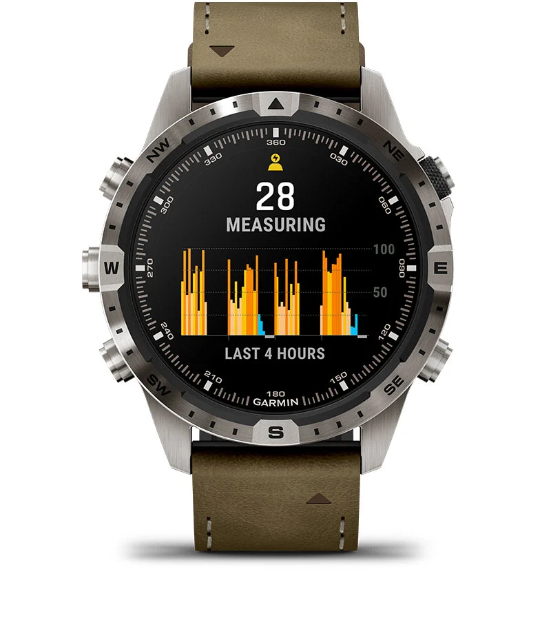 Registra una sesión de 2 minutos para guardar estadísticas clave, como la frecuencia cardiaca, la variabilidad de la frecuencia cardiaca, la pulsioximetría, la respiración y el estrés. A continuación, genera un informe con esas estadísticas y compártelo a través de la aplicación Garmin Connect en tu smartphone compatible.