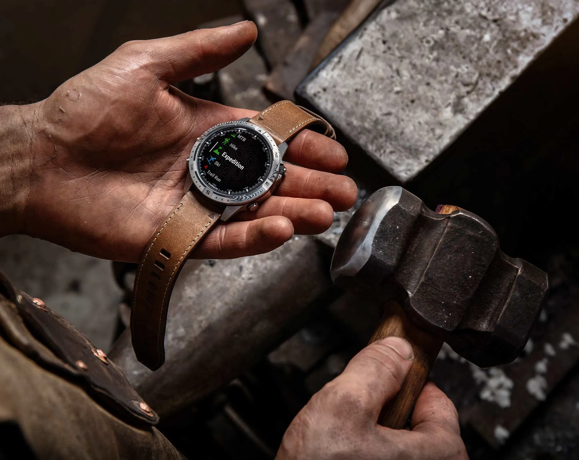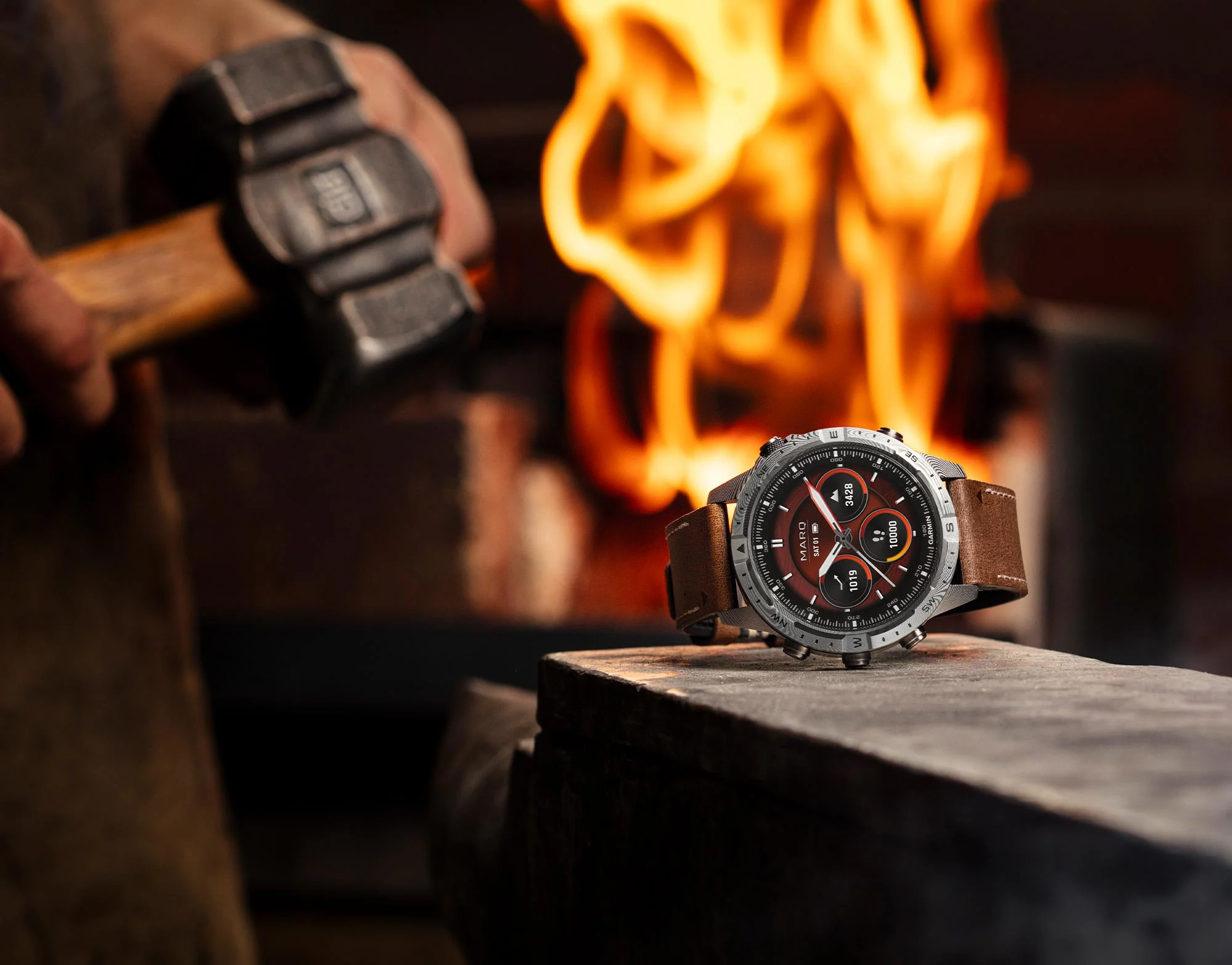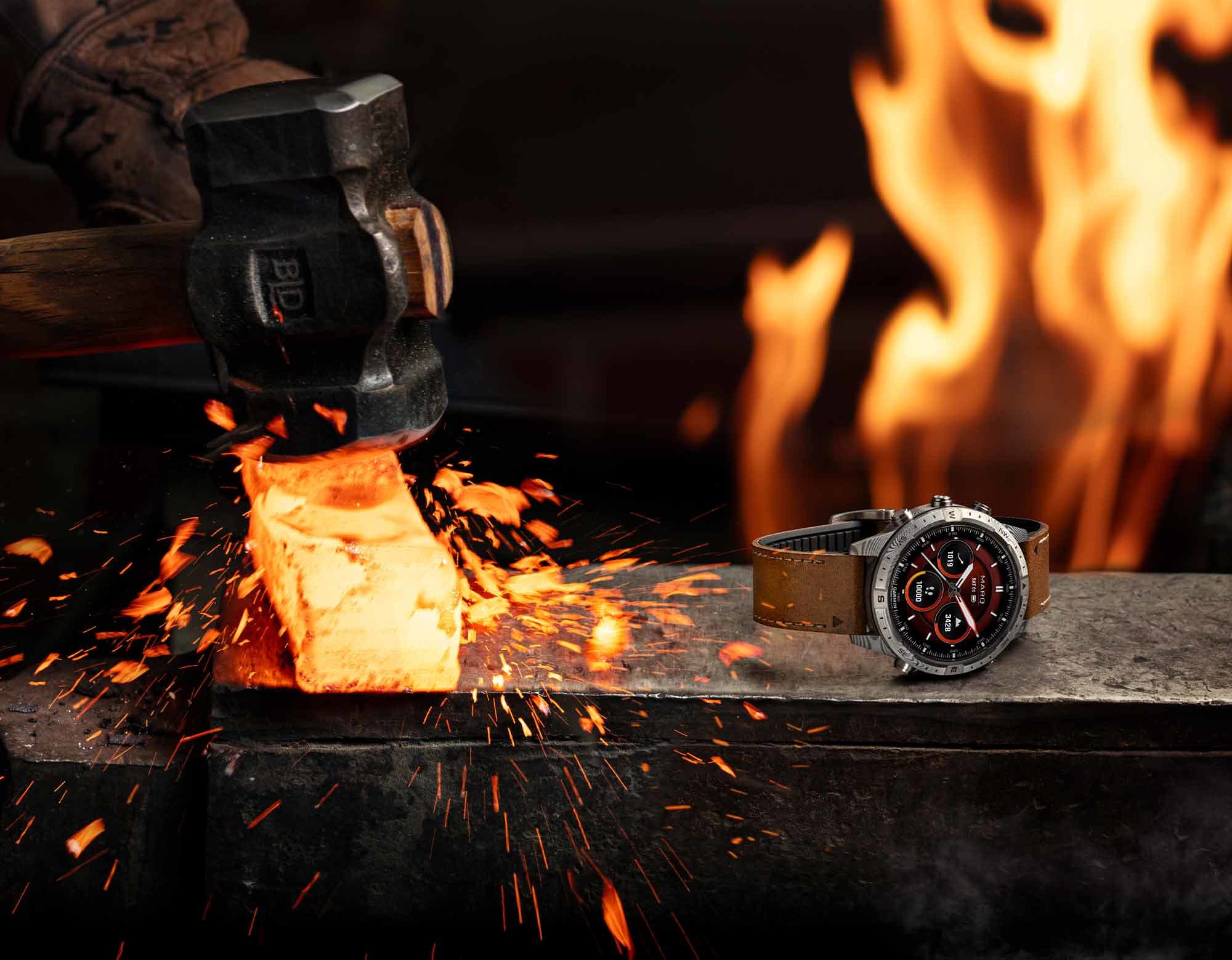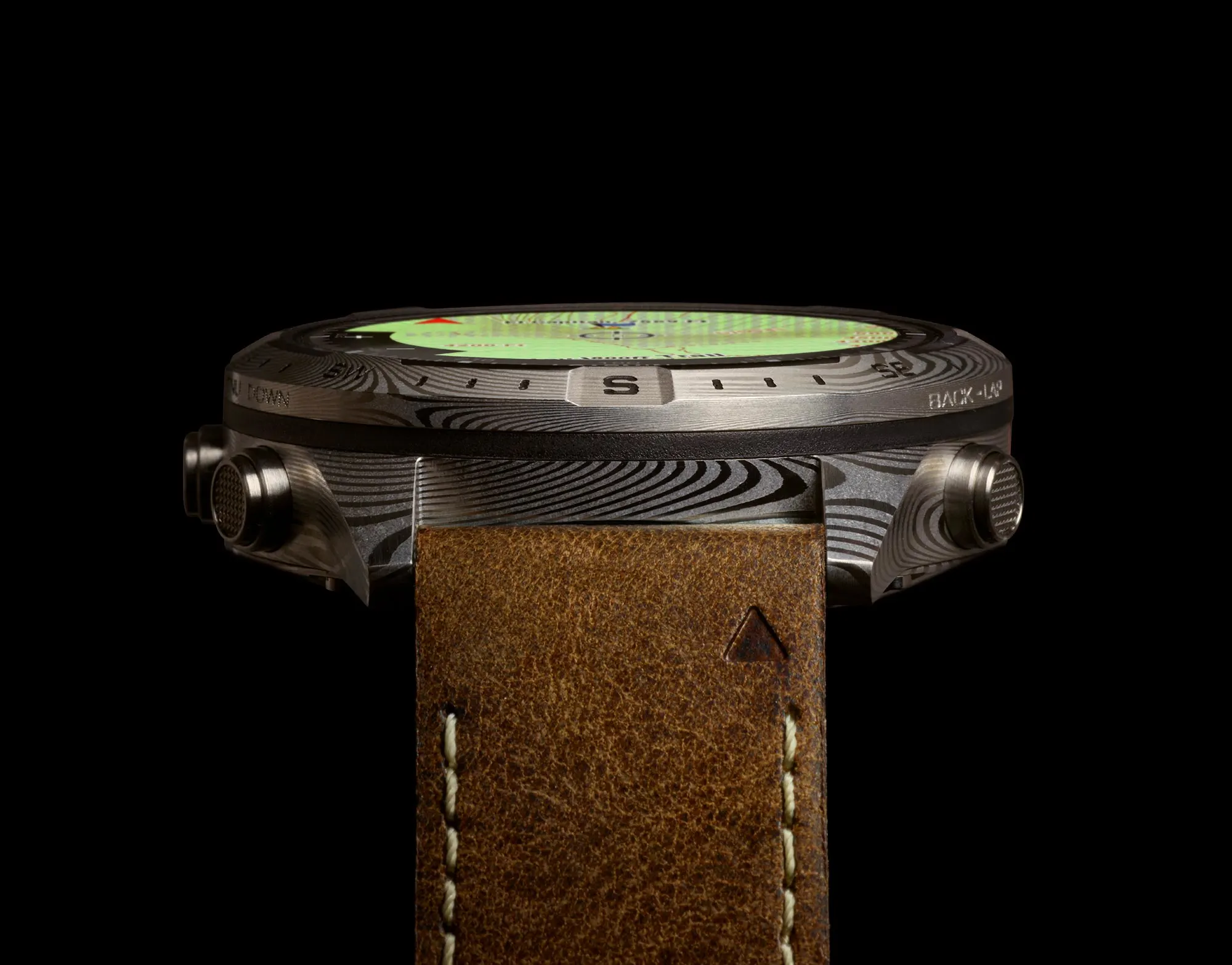 Un arte ancestral se ha reinventado para el mundo moderno. Este reloj de 46 mm fabricado con los mejores materiales está hecho de acero de Damasco e incluye una impresionante pantalla táctil AMOLED con una correa híbrida de cuero y silicona FKM resistente al sudor y a las manchas.
