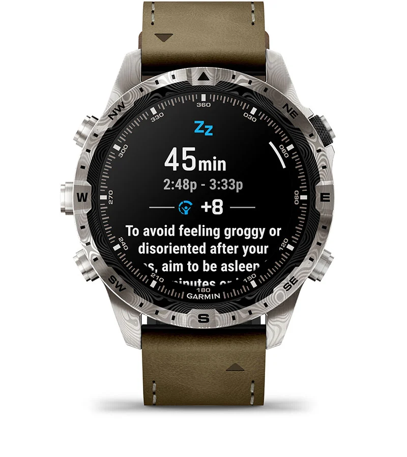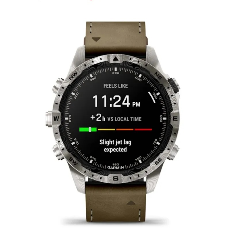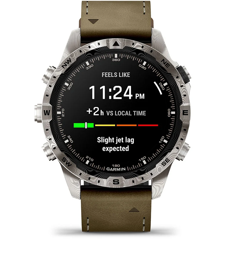 Ayuda a minimizar los esfuerzos del jet lag con información sobre la exposición a la luz, el horario de sueño y el ejercicio para tu próximo viaje de larga distancia. Introduce los datos del viaje en el calendario de la aplicación para smartphones Garmin Connect™ y haz un seguimiento de cómo tu reloj interno se adapta al nuevo destino.