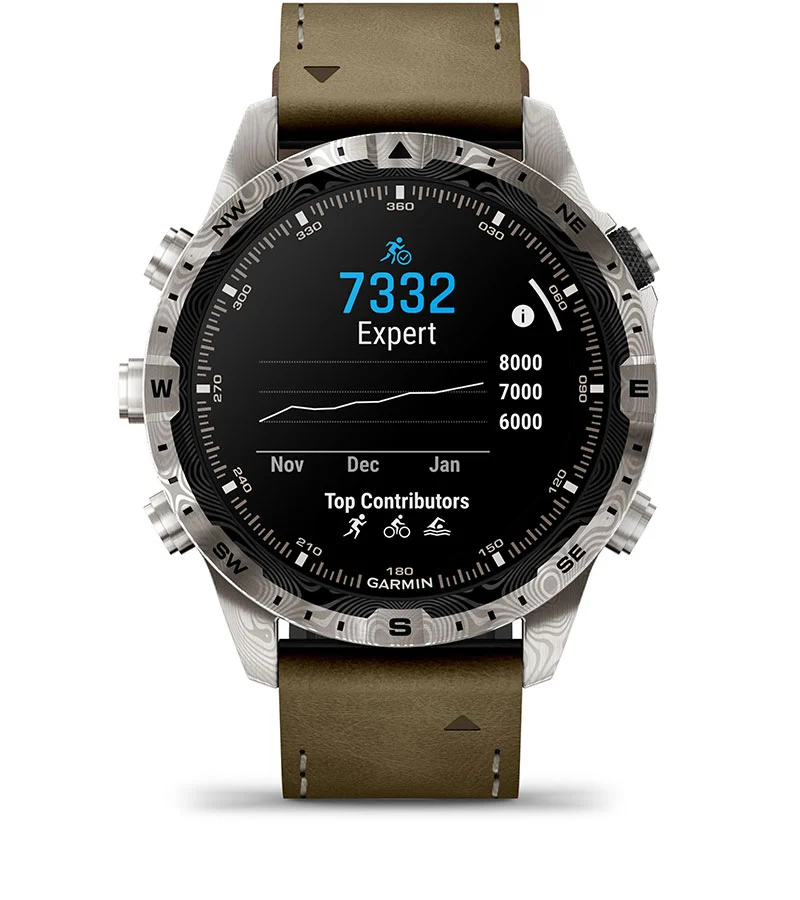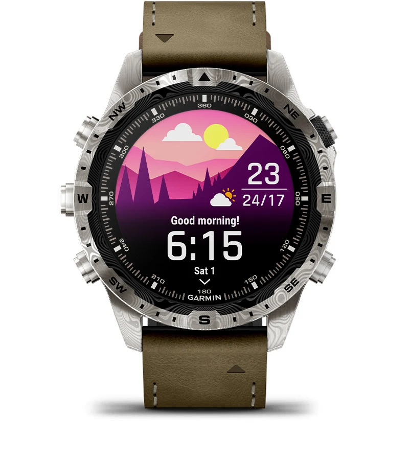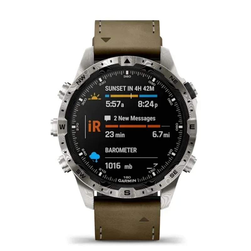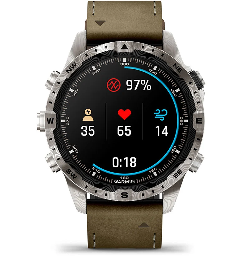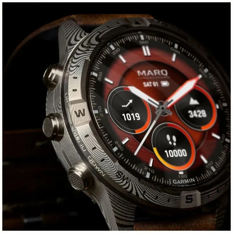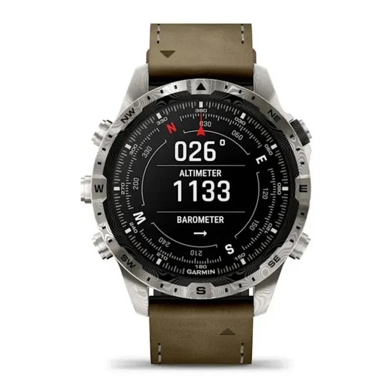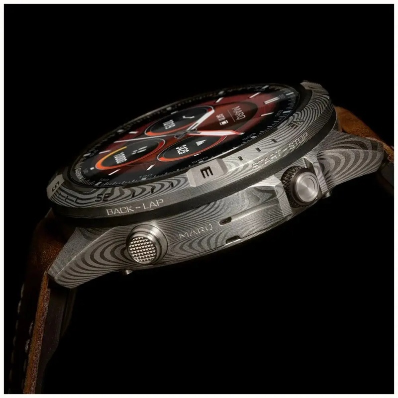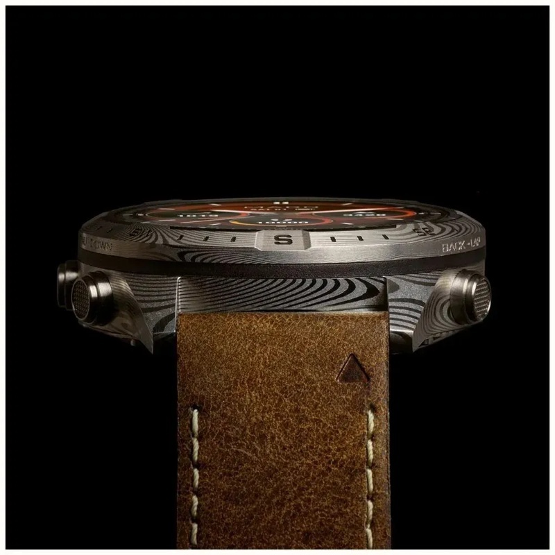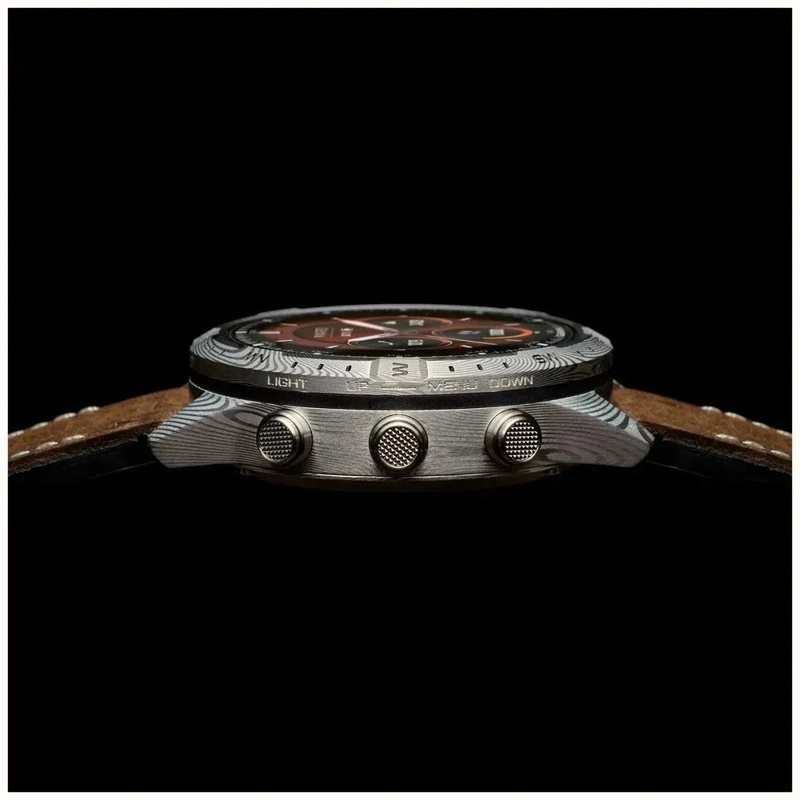 Un arte ancestral se ha reinventado para el mundo moderno. Este reloj de 46 mm fabricado con los mejores materiales está hecho de acero de Damasco e incluye una impresionante pantalla táctil AMOLED con una correa híbrida de cuero y silicona FKM resistente al sudor y a las manchas.