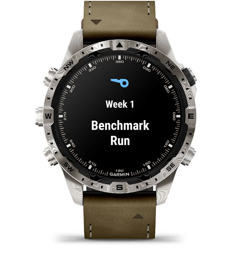 Consulta todas las sesiones de entrenamiento diarias recomendadas de la semana, que se adaptan después de cada sesión de carrera para ajustarse a tu rendimiento y recuperación, así como las próximas competiciones en el calendario de la aplicación para smartphones Garmin Connect.