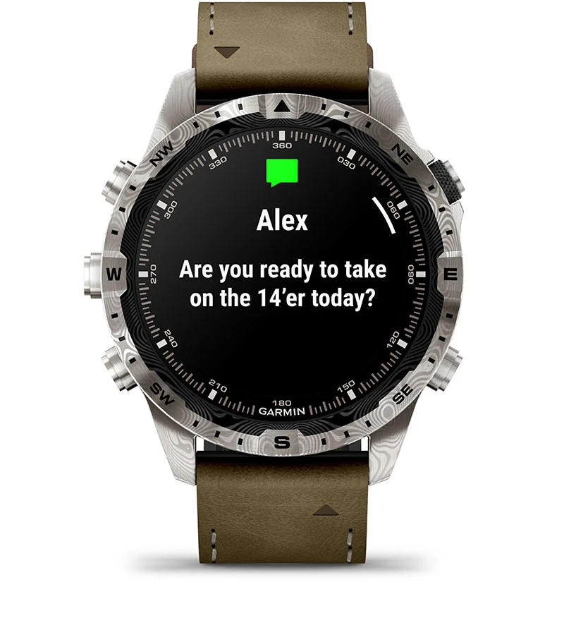 Recibe correos electrónicos, mensajes de texto y alertas directamente en el reloj cuando esté vinculado a un smartphone compatible.