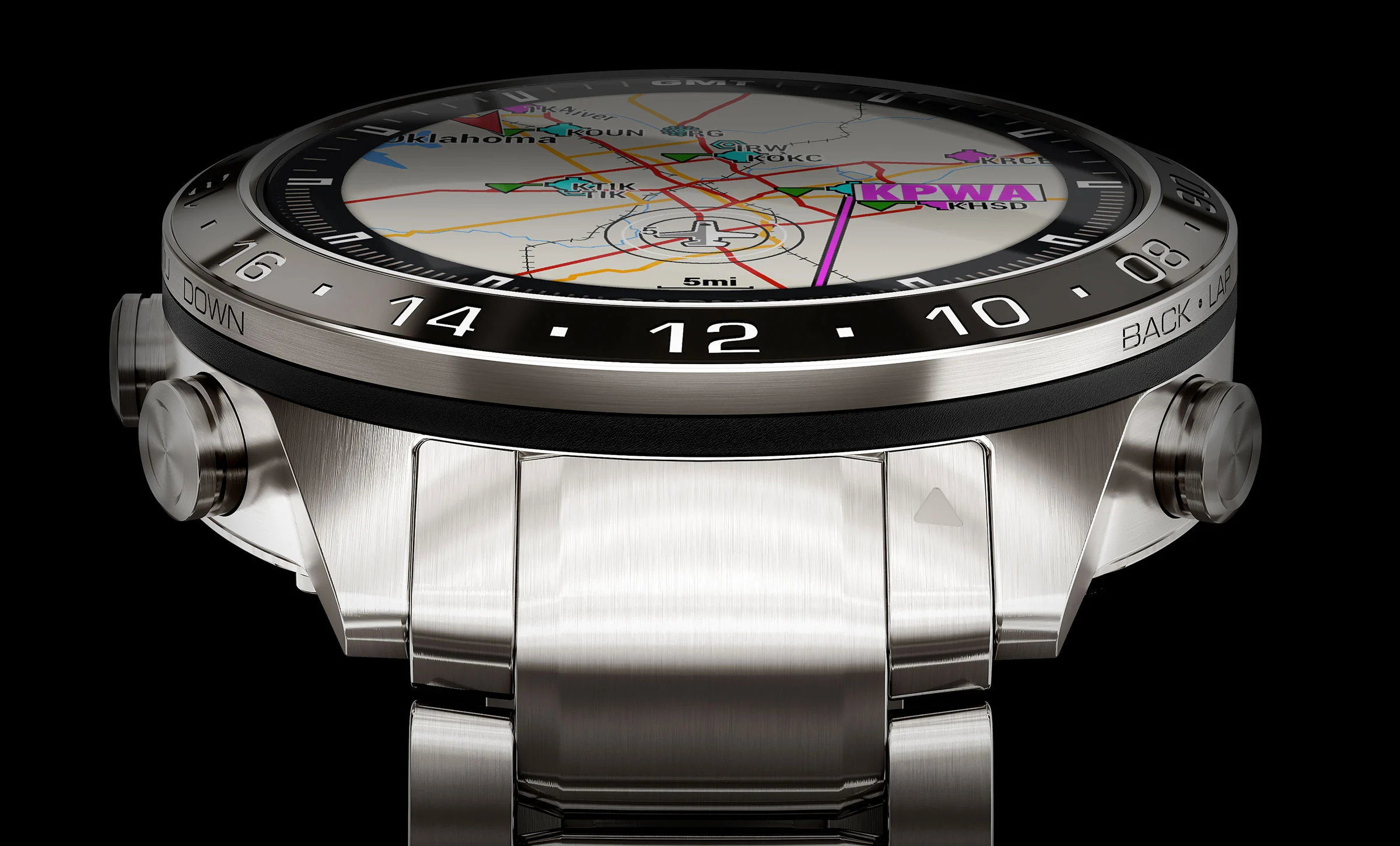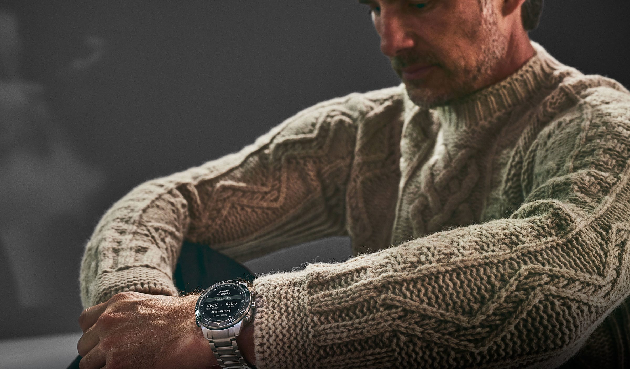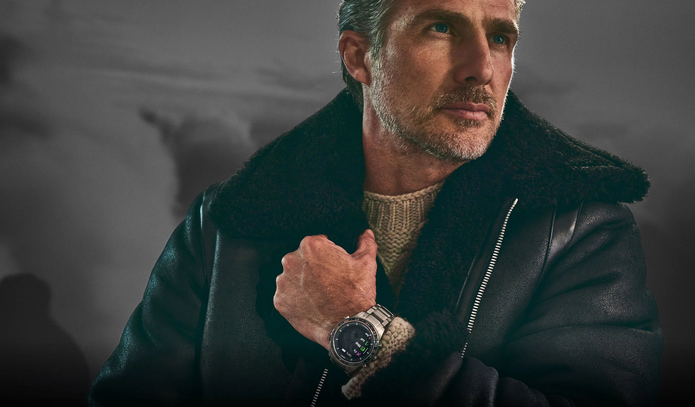 Fiel a sí mismo y ajeno al paso del tiempo. Este reloj moderno, lujoso y especializado posee una pulsera de titanio reforzada apta para vuelos de alta velocidad, una pantalla táctil AMOLED excepcional con botones de control tradicionales y una carcasa de 46 mm hecha de titanio de grado 5 que aporta una resistencia extraordinaria.