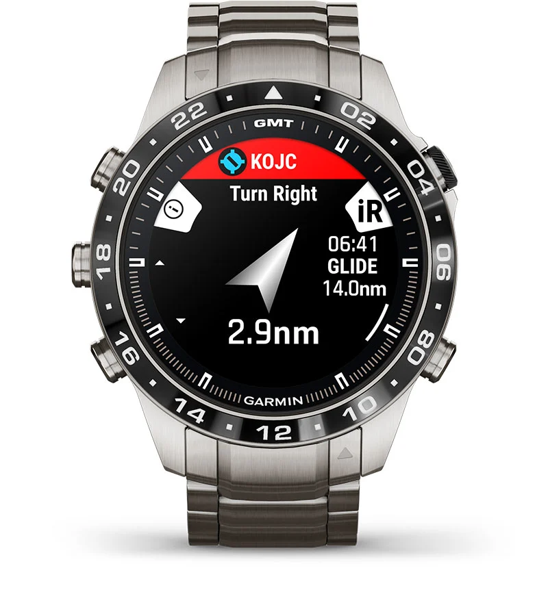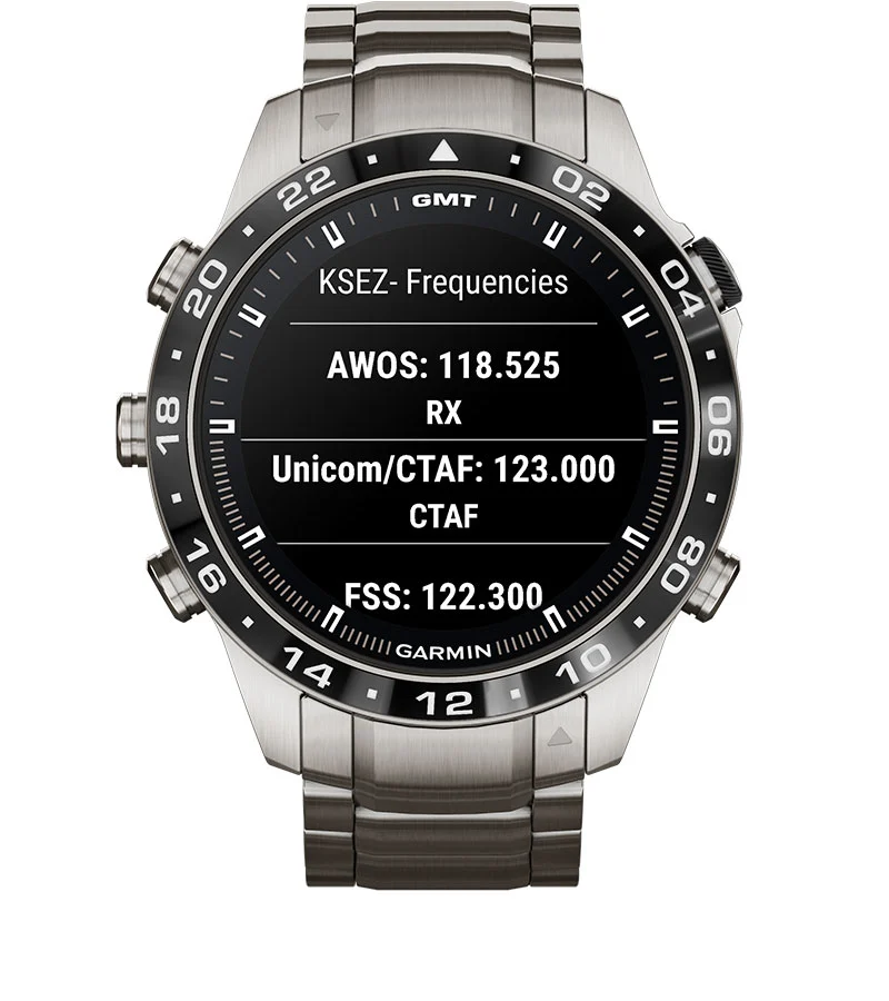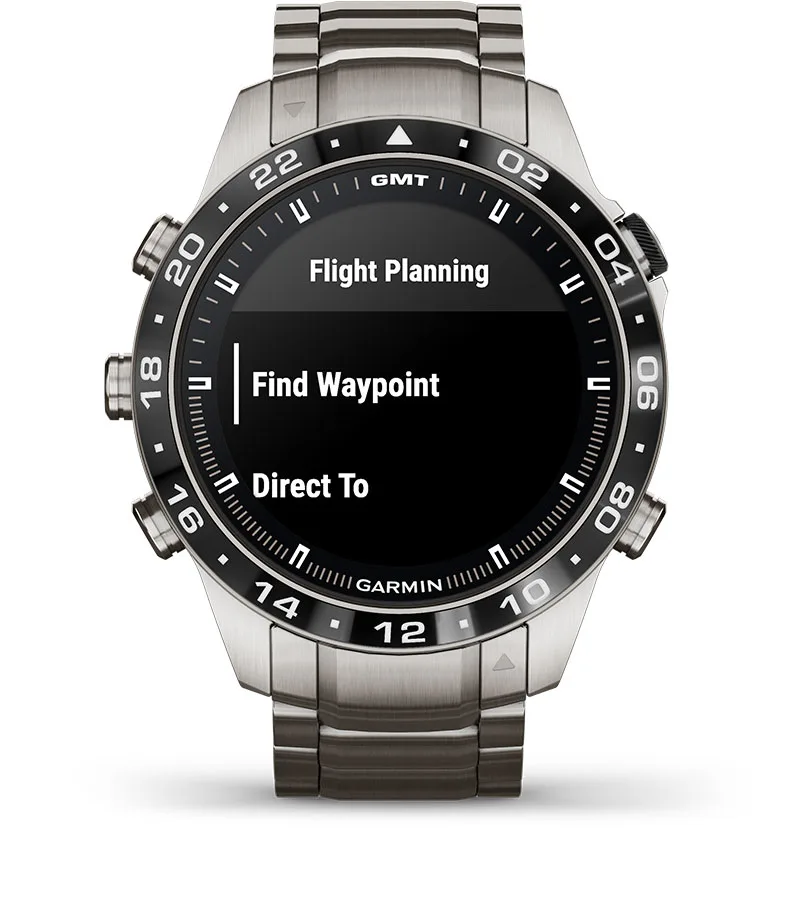 Transfiere tu plan de vuelo de la aplicación Garmin Pilot™ al reloj MARQ Aviator y consulta la lista de waypoints que incluye la ruta.