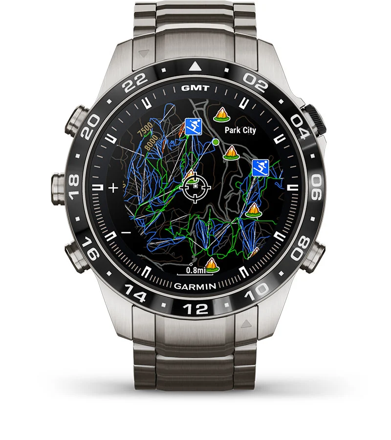 Fiel a sí mismo y ajeno al paso del tiempo. Este reloj moderno, lujoso y especializado posee una pulsera de titanio reforzada apta para vuelos de alta velocidad, una pantalla táctil AMOLED excepcional con botones de control tradicionales y una carcasa de 46 mm hecha de titanio de grado 5 que aporta una resistencia extraordinaria.
