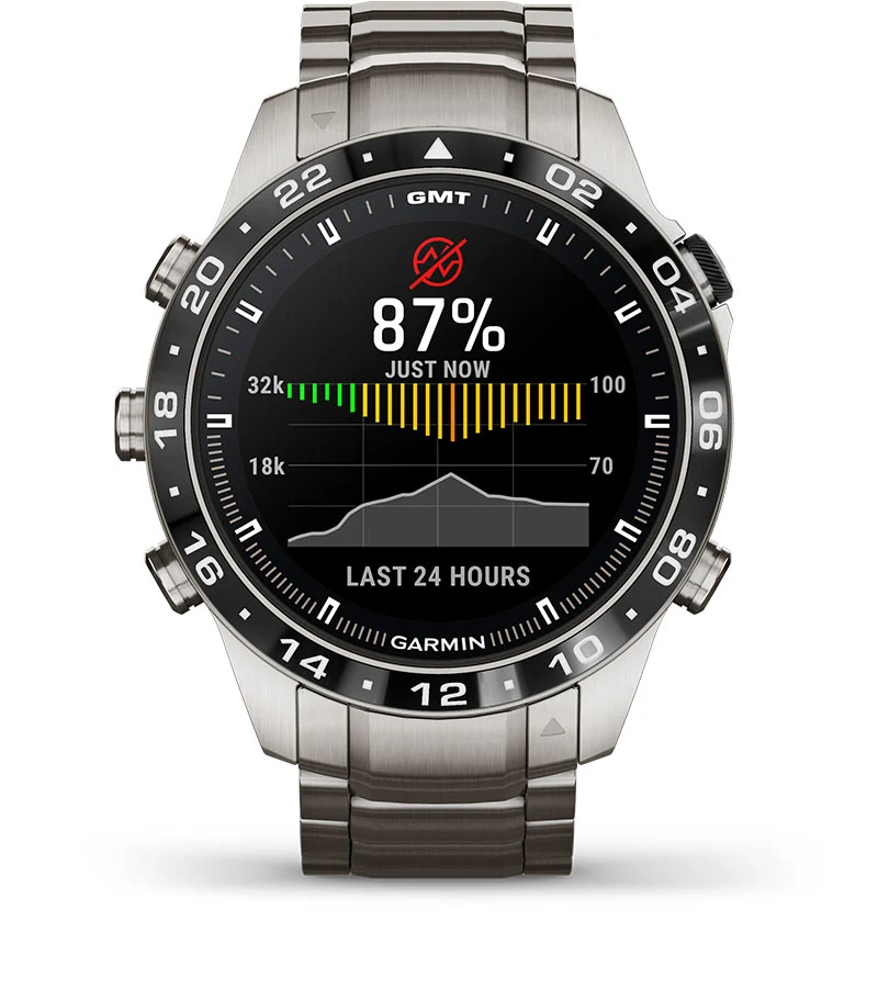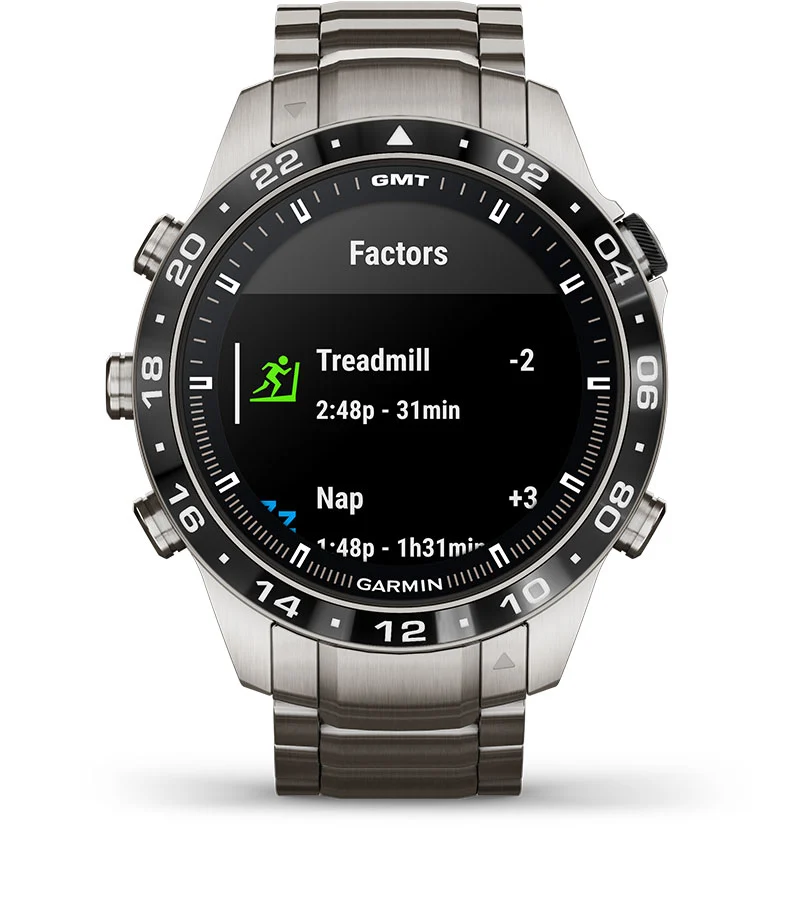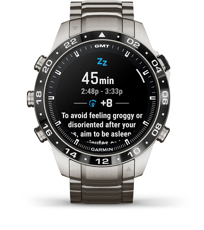 Ayuda a minimizar los esfuerzos del jet lag con información sobre la exposición a la luz, el horario de sueño y el ejercicio para tu próximo viaje de larga distancia. Introduce los datos del viaje en el calendario de la aplicación para smartphones Garmin Connect™ y haz un seguimiento de cómo tu reloj interno se adapta al nuevo destino.