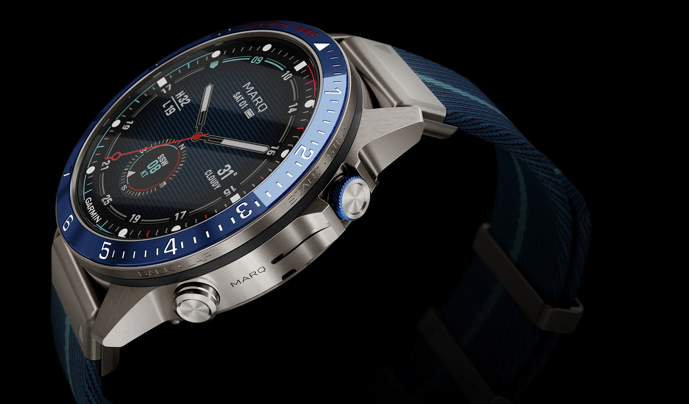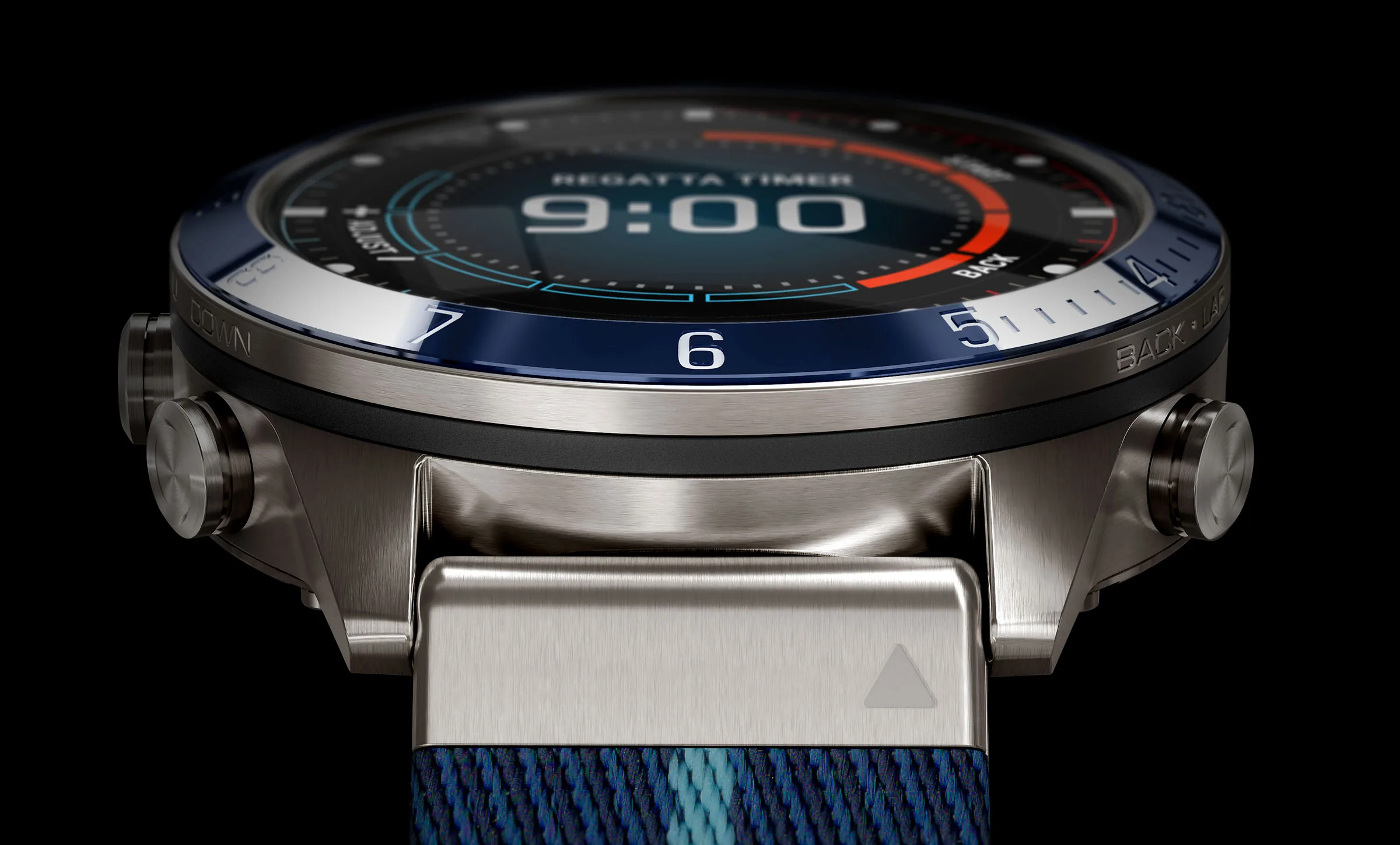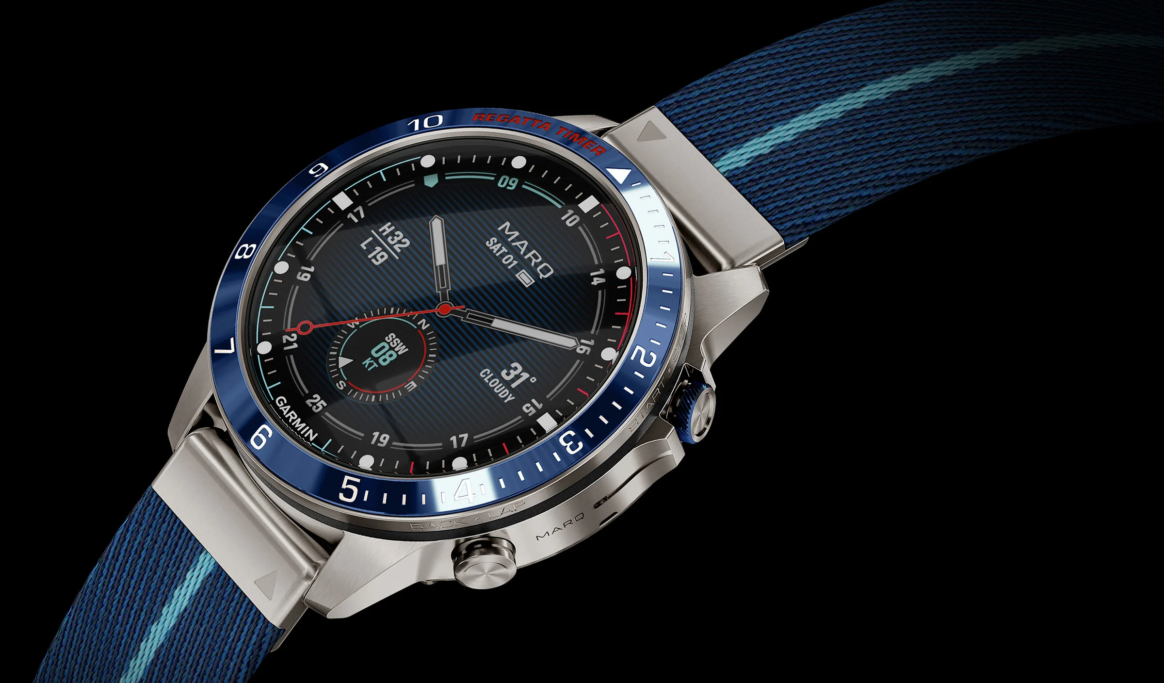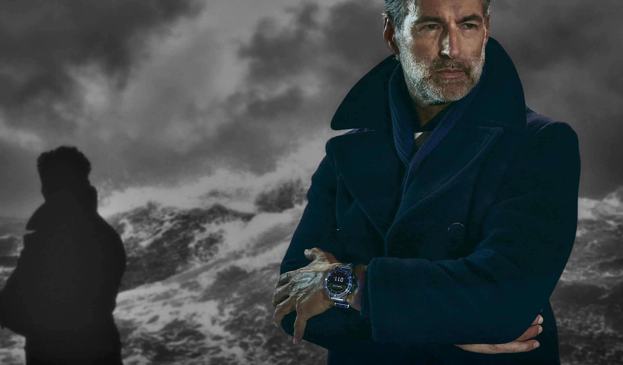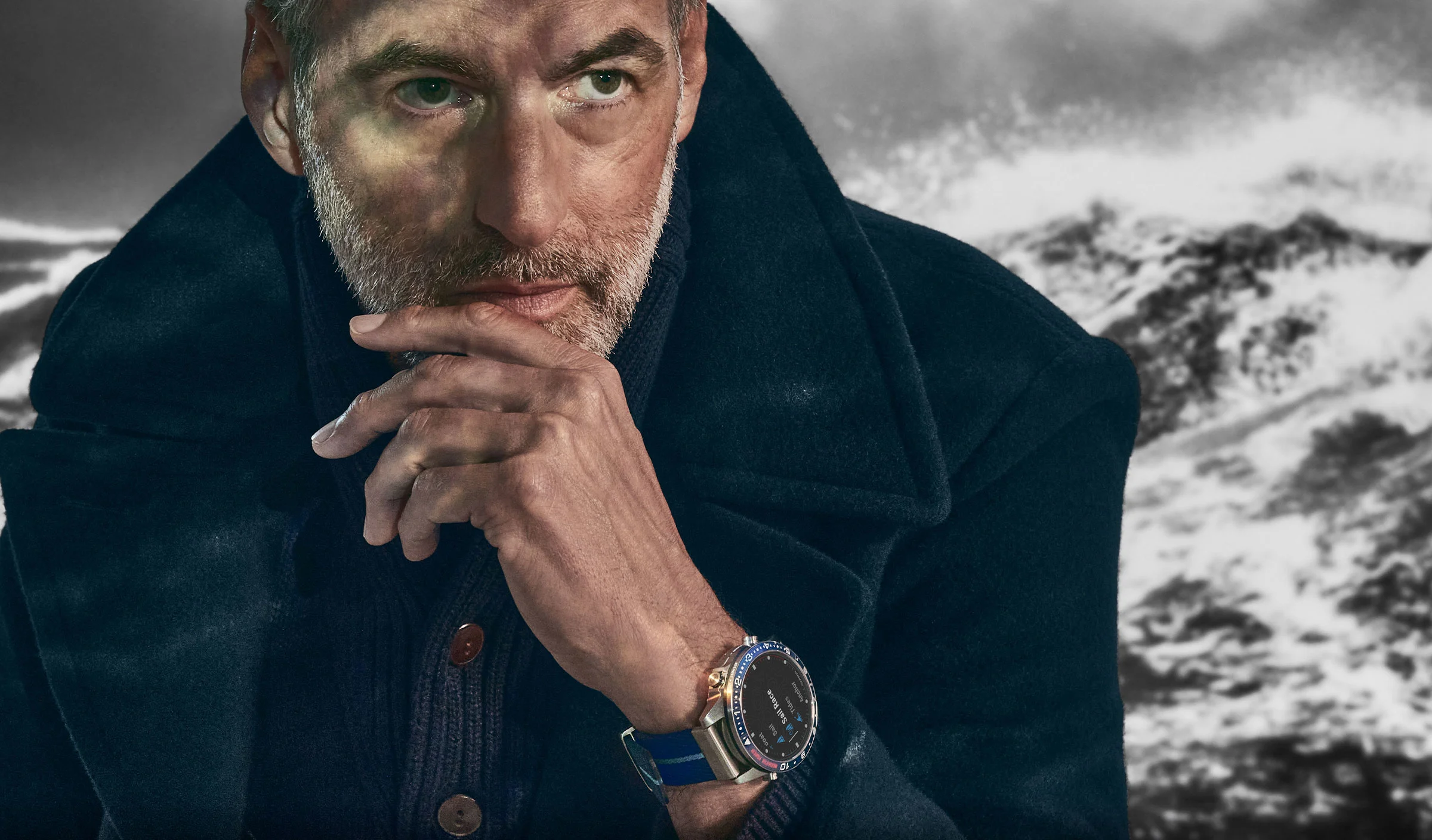 Este reloj moderno y lujoso, diseñado específicamente para quienes viven por el mar, posee una correa de nailon Jacquard de rayas inspirada en las regatas y una pantalla táctil AMOLED excepcional con botones de control tradicionales. La carcasa de 46 mm está hecha de titanio de grado 5, que aporta una resistencia extraordinaria.