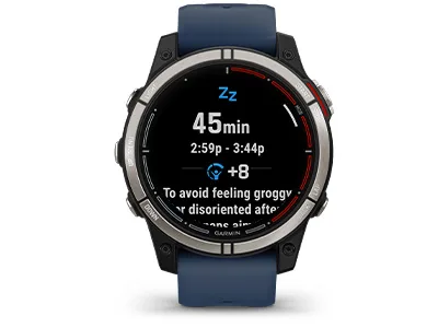 Minimiza los efectos del jet lag con información sobre la exposición a la luz, el horario de sueño y el ejercicio para tu próximo viaje de larga distancia. Introduce los datos del viaje en el calendario de la aplicación para smartphones Garmin Connect™ y haz un seguimiento de cómo tu reloj interno se adapta al nuevo destino.