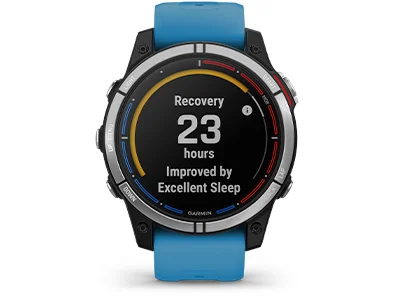 La batería de litio interna recargable proporciona hasta 18 días de autonomía en el modo smartwatch, 57 horas en el modo GPS y hasta 60 horas en el modo ahorro de energía UltraTrac™.