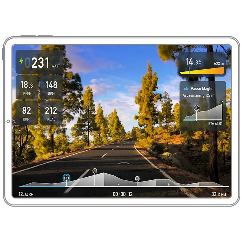 Prepara tus piernas para los ascensos más exigentes con la simulación realista de pendientes de hasta el 25 % de inclinación. Una vez coronadas, disfruta también de un descenso simulado.