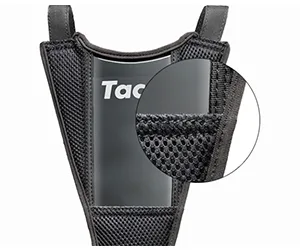 El bolsillo es adecuado para teléfonos de distintos tamaños, con una longitud máxima de 138 mm y una anchura máxima de 68 mm.