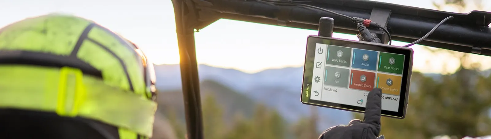Vincula Tread con la caja de conmutadores digitales Garmin PowerSwitch™ compatible (se vende por separado) para permitir el control en pantalla de los componentes electrónicos de 12 voltios de tu vehículo: barras luminosas, bloqueos del diferencial y mucho más.