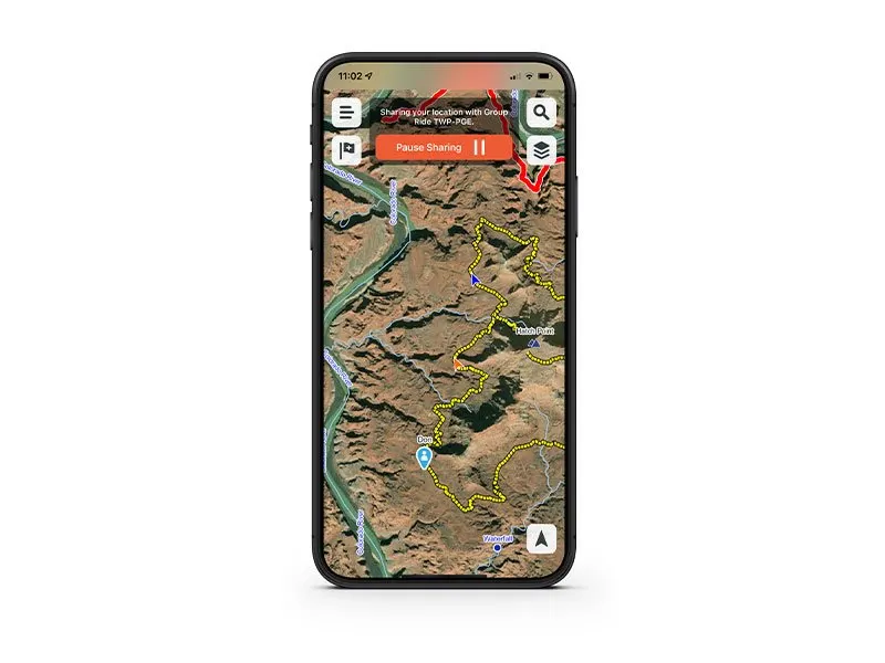 Vincula tu dispositivo con la app Tread para hacer seguimiento a tus amigos desde tu teléfono con la función Group Ride Mobile3.