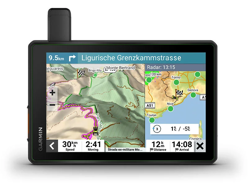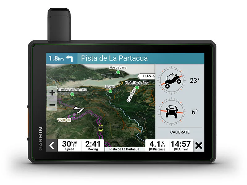 Adéntrate por caminos y senderos y disfruta con tus amigos gracias a este potente y resistente el navegador por satélite. Cuenta con todos los mapas que necesitas para no perderte y una tecnología de comunicación que te permitirá estar en contacto mientras estés ahí fuera.