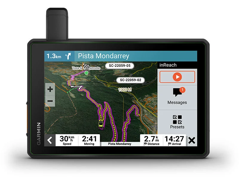 La tecnología inReach incorporada ofrece comunicación satelital global, mensajería de texto bidireccional, posibilidad de compartir de ubicación, petición de socorro interactiva y actualizaciones meteorológicas4 (se requiere una suscripción activa a un servicio por satélite).