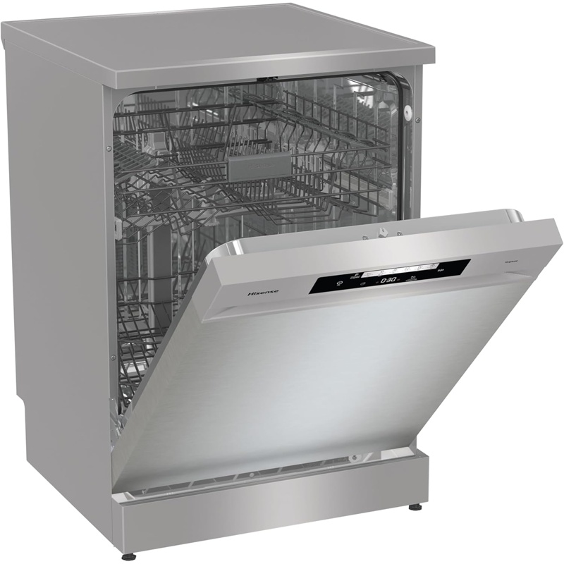 El lavavajillas Hisense HS642C60X tiene capacidad para 14 cubiertos y cuenta con una clasificación de ruido de 48 dB. Su ancho es de 60 cm, lo que permite una instalación en espacios estándar de cocina. Este modelo opera en la clase energética C, lo que determina su eficiencia de consumo de energía. El dispositivo cuenta con varios programas de lavado que se adaptan a diferentes tipos de carga y niveles de suciedad. Incorpora un sistema de secado que permite optimizar los resultados tras el lavado. La tecnología utilizada en el lavado incluye un diseño que facilita la circulación del agua, asegurando una limpieza eficaz. Además, el panel de control es intuitivo y permite la selección de los programas de manera sencilla. Dispone de un indicador que avisa sobre el estado de la sal y el abrillantador, facilitando el mantenimiento. Los materiales utilizados en su construcción son acero inoxidable y plásticos específicos para aplicaciones de cocina, garantizando la durabilidad y resistencia del electrodoméstico. Este modelo es compatible con la instalación en encimeras y puede ser utilizado con diferentes detergentes disponibles en el mercado. Las dimensiones internas ofrecen espacio suficiente para cacerolas y utensilios de cocina de diferentes tamaños. Incluye rejillas ajustables para organizar mejor los cubiertos y vajilla dentro del compartimento de lavado. El lavavajillas Hisense HS642C60X cumple con las normativas de la Unión Europea en cuanto a eficiencia energética y seguridad eléctrica.