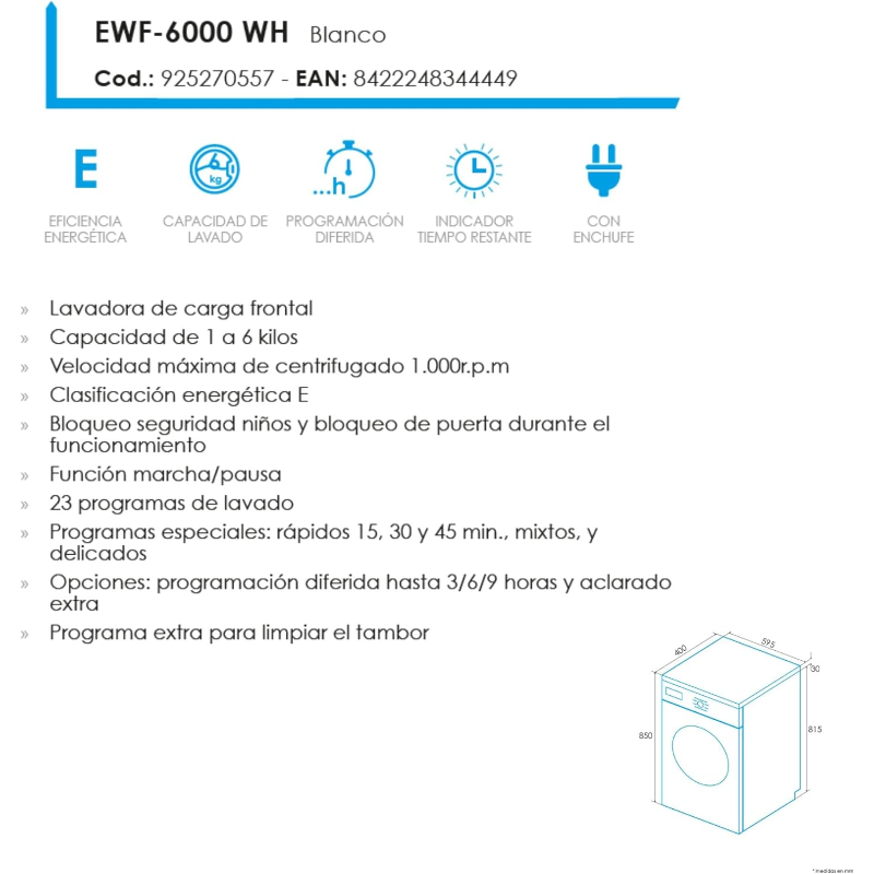 Edesa Lavadora EWF-6000 de Carga Frontal 6 kg 1000 rpm WH