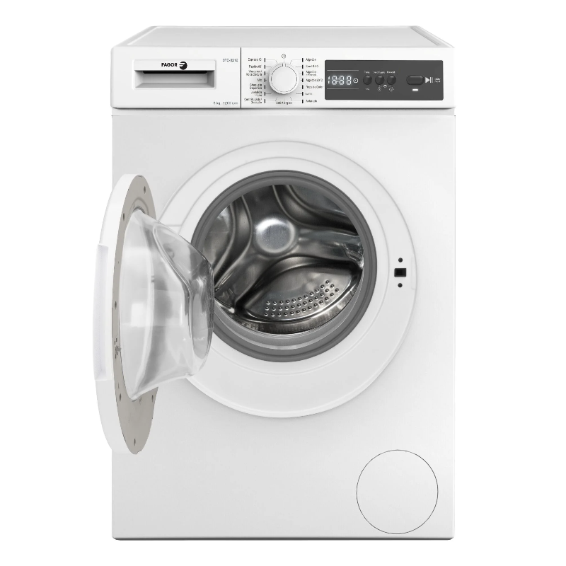 La Lavadora Fagor 3FE-8212 de carga frontal tiene una capacidad de carga de 8 kg y una velocidad de centrifugado de 1200 revoluciones por minuto. Este modelo cuenta con un motor de eficiencia energética clasificado. Dispone de múltiples programas de lavado que permiten seleccionar diferentes configuraciones según el tipo de tejido y el grado de suciedad. La máquina presenta un panel de control que incluye un display digital para visualizar el tiempo restante de ciclo. Su diseño incorpora un sistema de equilibrado que optimiza el funcionamiento durante el centrifugado. Además, está equipada con un sistema de protección contra sobrecargas. El tambor está fabricado en acero inoxidable, lo que garantiza una mayor resistencia a la corrosión. Esta lavadora es compatible con detergentes en polvo y líquidos. El equipo incluye diferentes niveles de temperatura ajustables para el ciclo de lavado. La Lavadora Fagor 3FE-8212 cumple con las normativas de eficiencia energética y emisiones de ruido. Su instalación requiere de conexión a agua y desagüe. El consumo de energía y agua varía según el programa seleccionado. La máquina tiene una clasificación de eficiencia energética que permite conocer su rendimiento en términos de consumo.