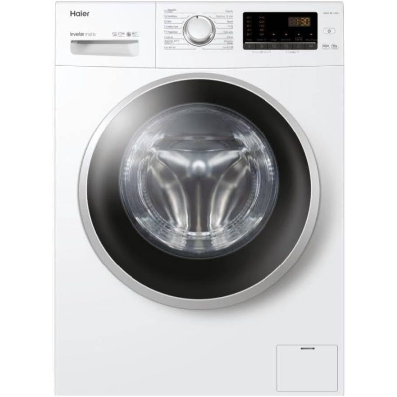 La Lavadora Haier de carga frontal HW80-BP1439N-IB tiene una capacidad de 8 kg y una velocidad de centrifugado de 1400 rpm. Cuenta con un motor de tecnología inverter que ajusta la potencia según la carga, lo cual optimiza el rendimiento. La máquina presenta un panel de control digital con diversas funciones de lavado, incluyendo programas específicos para diferentes tipos de tejido. Posee un tambor de acero inoxidable diseñado para minimizar el desgaste y facilitar el lavado de prendas delicadas. El nivel de ruido en el ciclo de lavado es de 58 dB y en el ciclo de centrifugado de 76 dB, lo que puede influir en su ubicación. Tiene clasificaciones energéticas que indican el consumo eléctrico según los ciclos de lavado. Además, cuenta con un sistema de autodiagnóstico que identifica fallos en el funcionamiento. Este modelo incluye una función de pausa para agregar prendas durante el ciclo de lavado. La Lavadora está instalada sobre cuatro patas regulables que permiten establecer una nivelación adecuada en la superficie donde se coloque. Integra una bandeja para detergente y un compartimento para suavizante, facilitando la carga de productos. La mangera de desagüe tiene una longitud estándar, permitiendo su instalación en diversas configuraciones de espacio. Este aparato eléctrico es adecuado para el uso residencial y puede conectarse a fuentes de agua fría y caliente. La Lavadora Haier HW80-BP1439N-IB es compatible con las instalaciones eléctricas comunes y requiere un voltaje de 220-240 V.