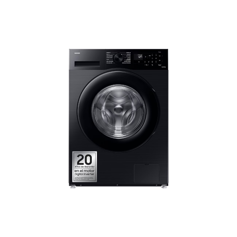 La lavadora Samsung de carga frontal WW80CGC04DABEC tiene una capacidad de 8 kg y una velocidad de centrifugado de 1400 rpm. Dispone de un motor Digital Inverter que utiliza imanes para reducir la fricción, lo que contribuye a un menor desgaste de los componentes. Cuenta con 14 programas de lavado, incluyendo ciclos específicos para algodón, sintéticos, lana y ropa deportiva. La máquina tiene una clasificación energética de A+++ y un sistema de control de vibraciones que disminuye el nivel de ruido durante el funcionamiento. El tambor está fabricado en acero inoxidable y presenta una estructura de desmontaje fácil para su limpieza. También incluye la función de inicio diferido, permitiendo programar el lavado hasta 24 horas con anticipación. La conectividad a través de SmartThings permite monitorear y controlar la lavadora mediante dispositivos móviles. En cuanto a la seguridad, incluye bloqueo para niños y sistema de protección contra fugas de agua. La entrada de agua es de tipo estándar y la instalación es adecuada para espacios con acceso a conexiones de agua y desagüe convencionales. La lavadora está diseñada para funcionar en un rango de temperatura de 0 a 40 grados Celsius.