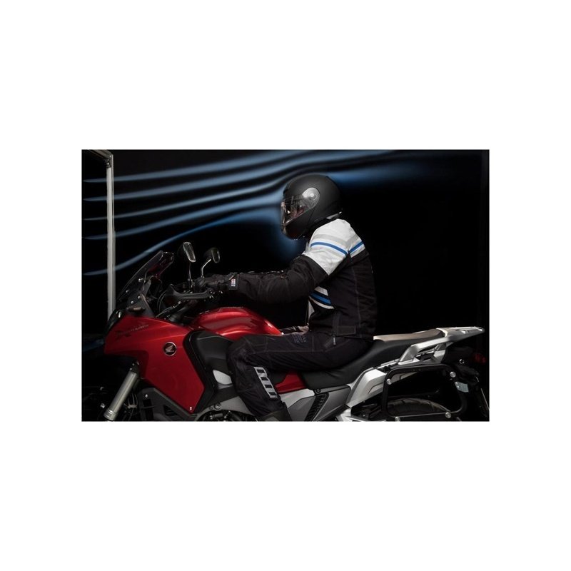 El casco modular Schuberth C3 Pro está diseñado para ofrecer una solución de protección para motociclistas. Este modelo cuenta con una estructura realizada en materiales compuestos que cumplen con las normas de seguridad establecidas. Posee un sistema de ventilación ajustable que permite el flujo de aire en el interior del casco, además de un visor interno que ofrece protección contra los rayos UV. La visera principal es resistente a los arañazos y puede ser desmontada sin necesidad de herramientas. El C3 Pro incluye un sistema de comunicación integrado opcional que es compatible con dispositivos de Bluetooth, facilitando la comunicación durante el uso. El sistema de cierre es de tipo doble D, lo que asegura un ajuste adecuado. Este casco permite una fácil interacción con otros componentes de seguridad y es compatible con diferentes tipos de pantallas y accesorios adicionales. El diseño modular permite levantar la parte frontal del casco, facilitando la entrada y salida del usuario. Además, el interior está compuesto por un material que absorbe la humedad, lo que contribuye a la regulación de temperatura interna durante su uso. Este casco cumple con las normativas de homologación en varios países, asegurando un estándar en su construcción y funcionalidad.