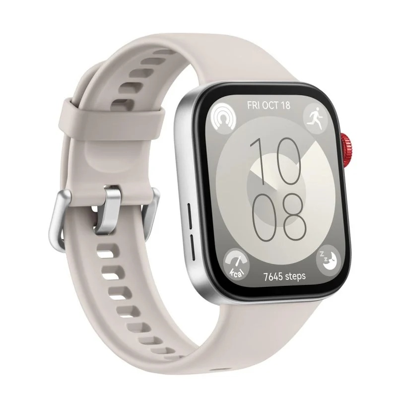 Huawei Watch Fit 3 es un reloj inteligente que cuenta con una pantalla AMOLED de 1,82 pulgadas. Dispone de una resolución de 466 x 280 píxeles. Este dispositivo incluye funciones de monitoreo de frecuencia cardíaca, seguimiento de sueño y medición de niveles de oxígeno en sangre. Además, posee más de 100 modos de entrenamiento y es capaz de detectar automáticamente algunos ejercicios. Su batería tiene una duración de hasta 10 días con un uso estándar. El reloj es compatible con sistemas operativos iOS y Android a través de la aplicación Huawei Health. El dispositivo también ofrece notificaciones de llamadas, mensajes y aplicaciones. Incorpora GPS integrado, lo cual permite un seguimiento preciso de distancias y rutas durante actividades al aire libre. Huawei Watch Fit 3 es resistente al agua con una clasificación de 5 ATM, lo que permite su uso en natación y actividades acuáticas. El peso del reloj es de aproximadamente 34 gramos. Este modelo utiliza un material de polímero para la caja y tiene correas intercambiables para adaptarse a diferentes preferencias del usuario. La conectividad se realiza a través de Bluetooth 5.0. La capacidad de almacenamiento de datos de actividad es de hasta 30 días.