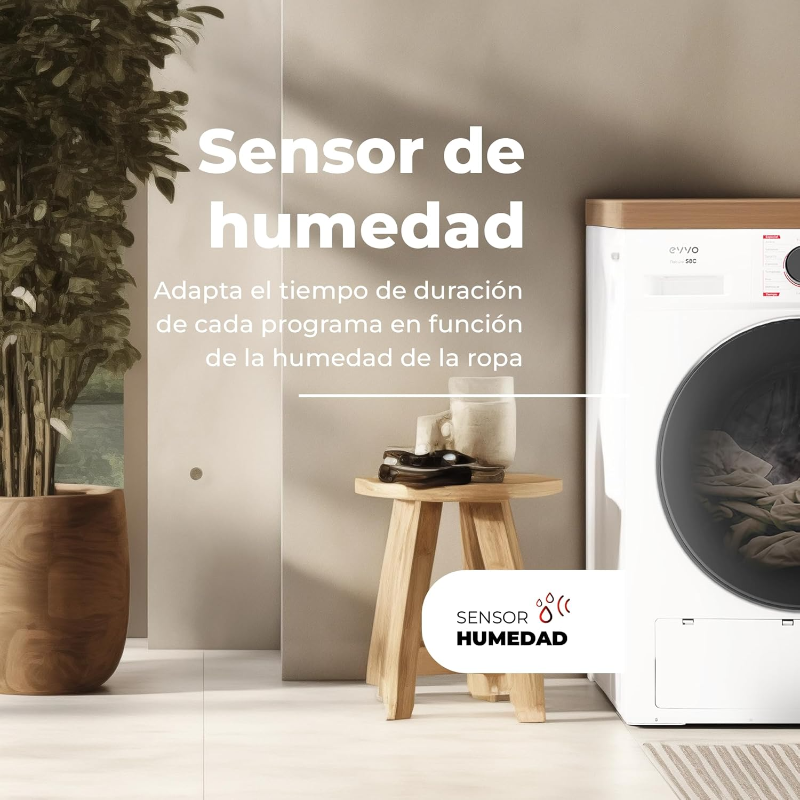 La Secadora de 8 kg de condensación modelo EVVO S8C cuenta con 16 programas de secado diseñados para adaptarse a diferentes tipos de tejidos y necesidades. Su capacidad es de 8 kg, lo que permite secar cargas de ropa considerables en un solo ciclo. El sistema de condensación recoge la humedad del aire en el tambor y la convierte en agua, que se acumula en un depósito que debe vaciarse regularmente. Este modelo incluye un tambor de acero inoxidable, lo que facilita la limpieza y mantenimiento. Entre sus programas se encuentran opciones para algodón, sintéticos, y planchado fácil, entre otros. El control de las funciones se realiza a través de un panel de mandos que incluye un temporizador, permitiendo ajustar el tiempo según la carga. La secadora cuenta con un sistema de seguridad que detiene el funcionamiento al abrir la puerta, garantizando que las operaciones se interrumpan en caso de acceso. Su potencia máxima es de 2.500 W, lo que permite un rendimiento óptimo durante el ciclo de secado. El nivel de ruido durante el ciclo de funcionamiento es de 65 dB, lo que puede influir en su ubicación en el hogar o en el espacio elegido. Este modelo está diseñado para conectarse a una toma de corriente estándar de 220-240 V. Es compatible con sistemas de evacuación de aire, si se requieren adaptaciones adicionales. La Secadora EVVO S8C puede utilizarse para una variedad de prendas, facilitando el secado en comparación con el secado al aire libre. Este dispositivo se presenta como una solución para quienes buscan un método de secado rápido y eficiente, mediante su capacidad de adaptarse a diferentes texturas y tiempos de secado.