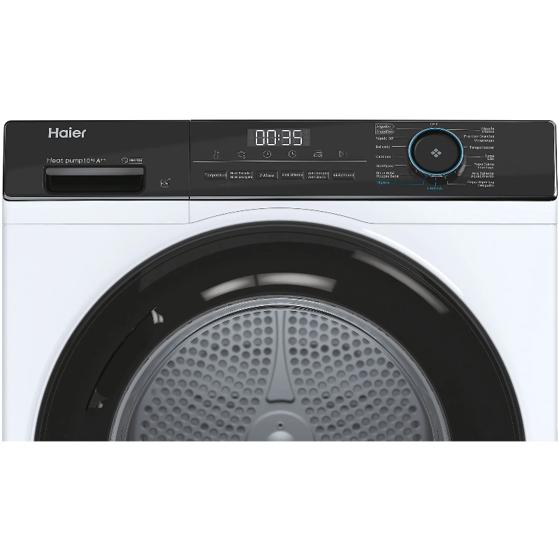 Secadora de 10 kg de la marca Haier, modelo HD100-A2939E-IB, cuenta con clasificación energética A++. Utiliza un sistema de bomba de calor para realizar el secado de la ropa. Este dispositivo permite secar una carga de hasta 10 kg de ropa de forma eficiente. La secadora dispone de múltiples programas de secado que permiten adaptar el ciclo a diferentes tipos de tejidos. Incorpora un sistema de autolimpieza que facilita el mantenimiento del aparato. Cuenta con un display digital que muestra el tiempo restante de secado y las diferentes configuraciones seleccionadas. Su diseño incluye un filtro de fácil acceso que facilita la limpieza. La secadora se puede colocar en espacios reducidos gracias a su diseño vertical, y su instalación solo requiere una toma de corriente. Los materiales utilizados en su fabricación son metal y plástico, garantizando resistencia y funcionalidad en su uso cotidiano. Esta secadora es compatible con el secado de diversas prendas, desde ropa diaria hasta artículos de mayor volumen, como toallas y sábanas. Su consumo energético está dentro de los estándares fijados por la normativa de la Unión Europea, lo que puede influir en el ahorro energético a largo plazo. Equipado con un programa de secado especial para fibras sintéticas, este electrodoméstico se adapta a diferentes necesidades sin comprometer la eficiencia del proceso de secado.
