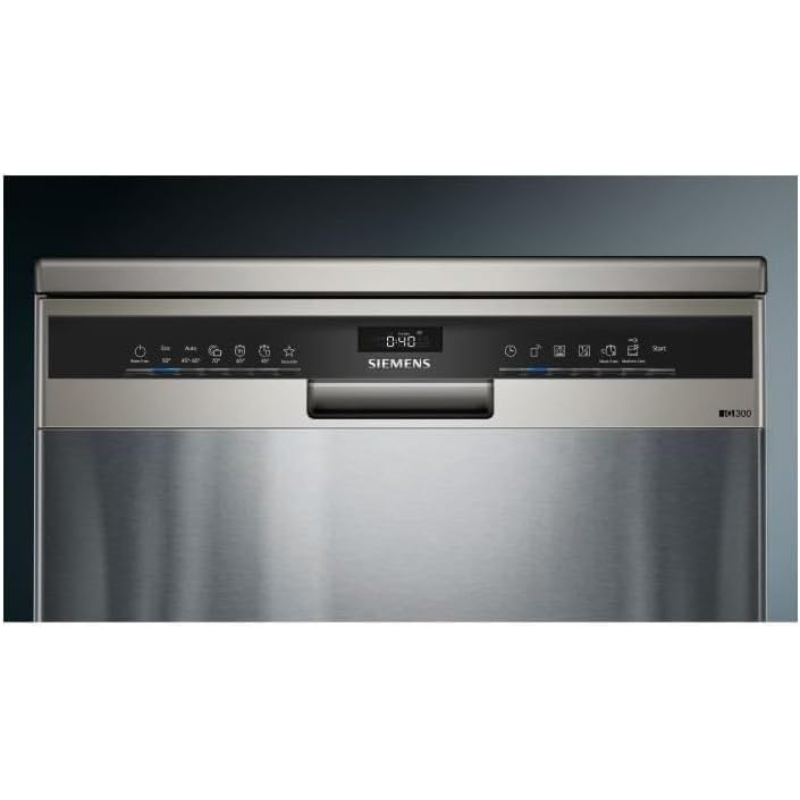El Siemens SN23HI02ME es un lavavajillas independiente que tiene capacidad para 14 cubiertos. Su clasificación de eficiencia energética es de clase D. Este modelo cuenta con un motor EcoSilence Drive, diseñado para reducir el ruido durante su funcionamiento. Incorpora un sistema de secado con Tecnología Zeolite, que utiliza mineral natural para mejorar el proceso de secado. Dispone de varias opciones de lavado, incluyendo programas específicos para cristales y para vajilla con alta suciedad. El panel de control es intuitivo y permite seleccionar entre diferentes ciclos, y su función de inicio diferido permite programar el funcionamiento en un horario conveniente. Este lavavajillas tiene un diseño interior flexible con cestas ajustables, que facilitan la colocación de utensilios y vajilla de diferentes tamaños. Cuenta con un sensor de carga que optimiza el uso del agua en función de la carga. El sistema de protección con AquaStop previene filtraciones de agua. La clase de eficiencia de secado es de clase A. Además, tiene indicaciones claras para la sal y el abrillantador, garantizando un mantenimiento adecuado. Es compatible con pastillas de lavado 3 en 1. Este modelo se encuentra en el mercado con diferentes configuraciones de programas y funciones adicionales según la variante.