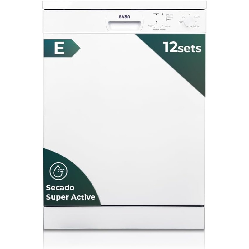 El lavavajillas Svan SJ12600E tiene capacidad para 12 cubiertos y cuenta con una potencia de 1900 W. Incorpora cinco programas de lavado, que permiten distintas configuraciones según las necesidades. El nivel de ruido durante su funcionamiento es de 52 dB, lo que se sitúa dentro de un rango que puede considerarse estándar para este tipo de electrodomésticos. Su ancho es de 60 cm, lo que facilita su integración en diversas cocinas. Este modelo pertenece a la clase energética E, lo que indica su eficiencia en el consumo energético. Dispone de un sistema de control que permite seleccionar el programa de lavado deseado. Incluye bandejas y cestas ajustables para una organización personalizada de los utensilios a lavar. La conectividad para el suministro de agua y desagüe está diseñada para facilitar la instalación en el hogar. Es compatible con el uso de detergentes convencionales para lavavajillas. El ciclo de lavado varía según el programa seleccionado, que puede abarcar desde un lavado intensivo hasta programas más cortos. El Svan SJ12600E también cuenta con un ciclo de enjuague para asegurar la eliminación de restos de detergente. Su diseño interno permite una adecuada circulación del agua durante el lavado, lo que contribuye a la eficacia del proceso. La construcción y los materiales utilizados en su fabricación se alinean con las normativas establecidas para electrodomésticos de esta categoría. Este lavavajillas es adecuado para uso doméstico, permitiendo la limpieza de una variedad de utensilios de cocina.