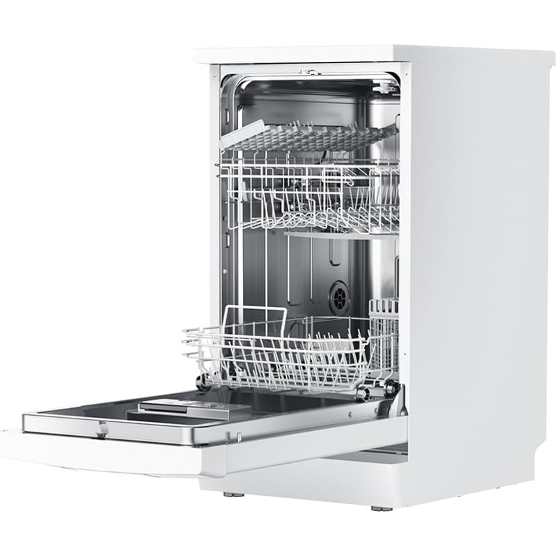 El Svan SJ94500ED es un lavavajillas que tiene una capacidad para 9 cubiertos. Este electrodoméstico cuenta con una potencia de 2100 W y ofrece 7 programas de lavado, lo que permite seleccionar diferentes configuraciones según las necesidades de limpieza. El tamaño del aparato es de 45 cm, lo que facilita su instalación en diferentes espacios. La clase de eficiencia energética es E, lo que se traduce en un consumo de recursos que se ajusta a esta clasificación. El lavavajillas incluye un sistema de control mecanizado, display para la selección de programas y un ciclo de enjuague diseñado para la eliminación de residuos. Adicionalmente, cuenta con un sistema de filtración que retiene partículas durante el ciclo de lavado. Los programas disponibles abarcan desde ciclos cortos hasta opciones para la limpieza intensiva, lo que se adapta a la variedad de utensilios. La bandeja para cubiertos permite una organización sencilla durante el lavado. Este modelo es una opción a considerar para el manejo de la limpieza de utensilios de cocina.
